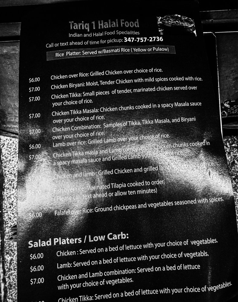 Tariq's #1 Halal Food Cart Menu